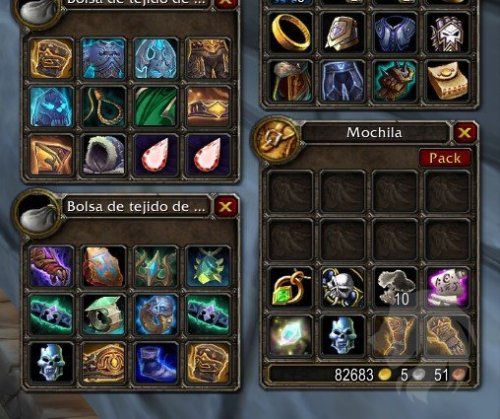 - JPack recoge y coloca tus ítems en un orden determinado. Se recomienda un addon de inventario (Bagnon, Onebag, etc.)