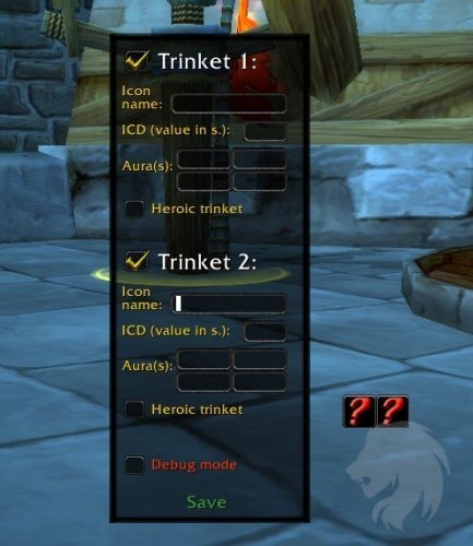 TrinketICD es un addon para mostrar el ICD (CD interno) de tu ítem proc(s). El marco es movible y escalable con la rueda del ratón.