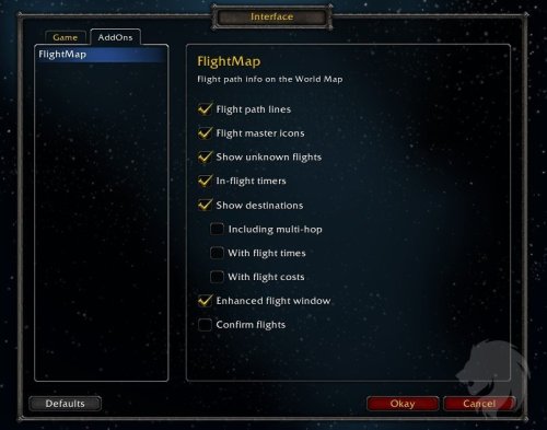 Dibuja líneas en los mapas de los continentes, mostrándote visualmente dónde puedes volar desde cada zona cuando pasas el ratón por encima, además de mostrar una ventana con todos los destinos disponibles, sus costes y sus duraciones de vuelo.