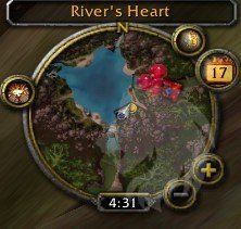 Síguela y te llevará a los nodos de hierbas y minerales. Las ubicaciones de los nodos potenciales se muestran como gemas rojas en el minimapa.