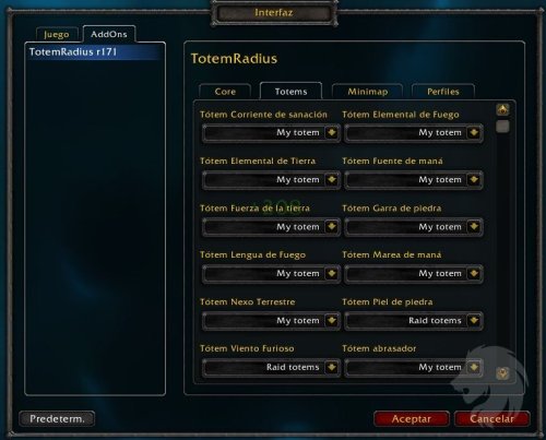 TotemRadius (TR) te muestra dónde tiene efecto el aura de tu tótem en el minimapa.