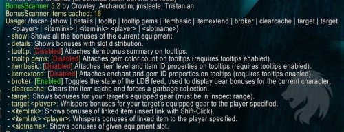 Puede funcionar como un addon independiente de escaneo de información sobre herramientas, pero la intención original detrás de su creación era ser una biblioteca para otros mods, solicitando datos de bonificación de ítems.