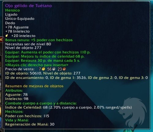 Escanea tu equipo leyendo las descripciones de los ítems en busca de bonificaciones acumulativas como el daño de hechizo adicional y las suma.