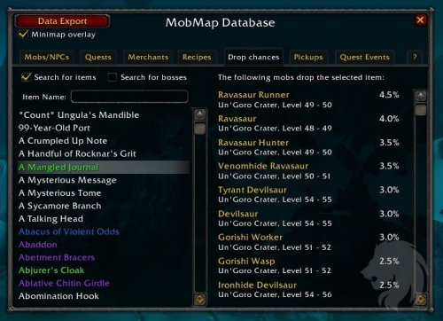 El addon MobMap es una especie de navegador de base de datos dentro del juego.