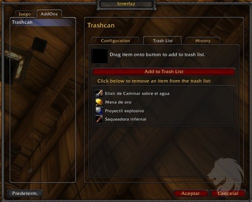 (Nota: cuando se instala por primera vez, el Trashcan está desactivado. Ve a Opciones->Interfaz->Adiciones para activarlo).
