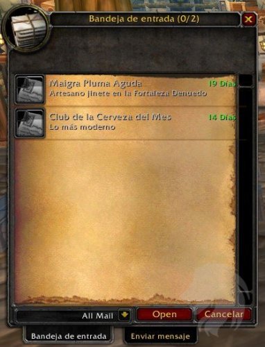 - Desplegable incrustado para seleccionar qué abrir, todo el correo, todos los ítems, todo el oro
