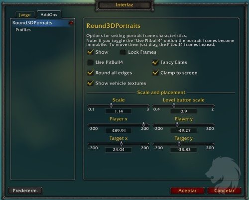 También hay una opción de configuración para utilizar los marcos de jugador y objetivo de PitBull4 como los padres de los retratos 3D.