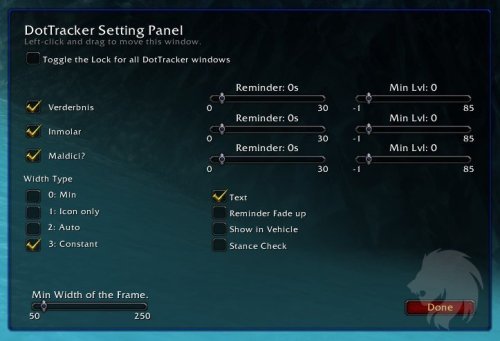 DotTracker almacena la configuración por especialización para cada personaje, por lo que puede diseñar configuraciones para cada especialización para cada personaje.
