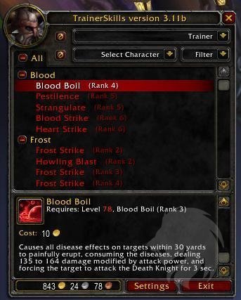 Comienza vacío por lo que tienes que visitar a tus entrenadores antes de ver nada en este addon. También guarda la configuración de los filtros en los entrenadores para que sólo tengas que configurarlo una vez.