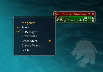 - Activa el rastreo de un jugador enemigo y recibe alertas cuando sea detectado por otro usuario del addon Stalker