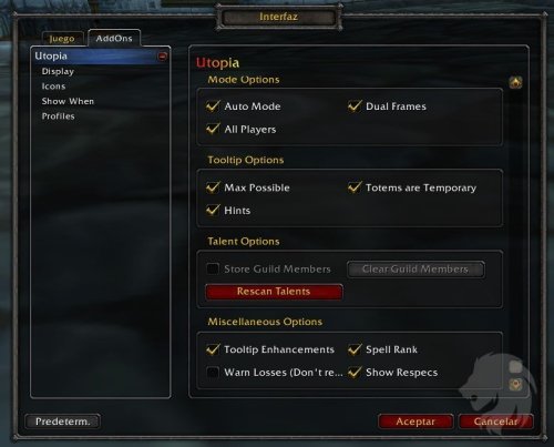 Utopia te dará una visión muy concisa y clara de tus buffs y debuffs.