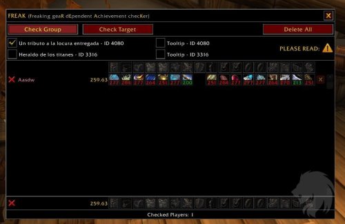 Comprobación del equipo para los logros "Un tributo a la locura entregada" y "Heraldo de los titanes".