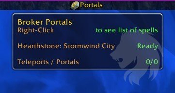 Está diseñado como un plug-in DataBroker, que te permite acceder a todos los portales y hechizos de teletransporte desde un solo lugar.