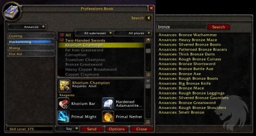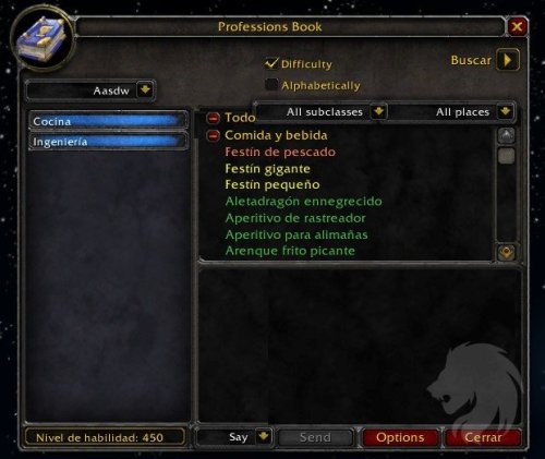ProfessionsBook mantiene un registro de todos los ítems conocidos que tus personajes pueden fabricar.