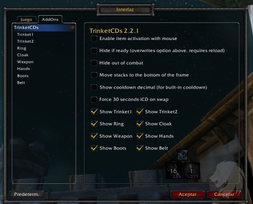 TrinketCDs sigue dinámicamente el CD de las abalorios y encantamientos equipados.