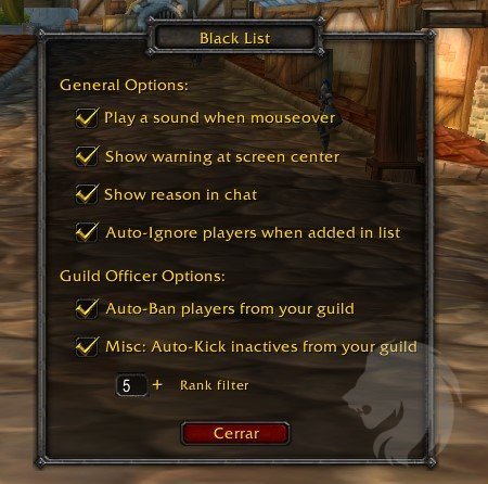 Este addon puede incluso expulsar automáticamente de tu hermandad a los jugadores incluidos en la lista negra si se cuelan (y tienes permiso para hacerlo).