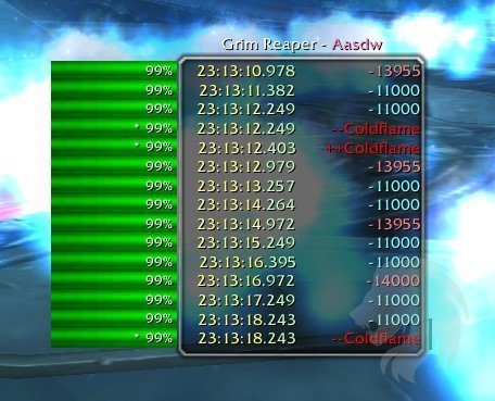 Grim Reaper te permite acceder de forma rápida y sencilla al registro de combate de cualquier miembro de la banda con solo mover el ratón o pulsar una tecla.