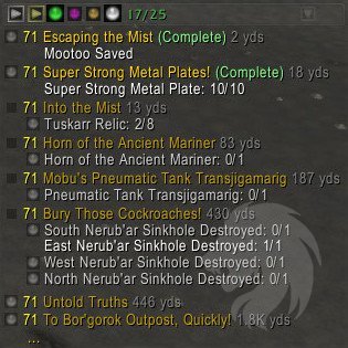 Recolección - Carbonite tiene la capacidad de rastrear y mostrar tus nodos de minería y herboristería para permitir un seguimiento rápido y fácil de dónde aparecen. Incluye la posibilidad de importar una versión especial de gathermate2 que rellena completamente tu lista.