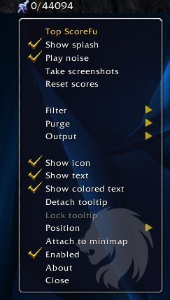 FuBar_TopScoreFu es un complemento para FuBar que permite a los jugadores rastrear y mostrar sus mejores puntuaciones de daño y sanación.