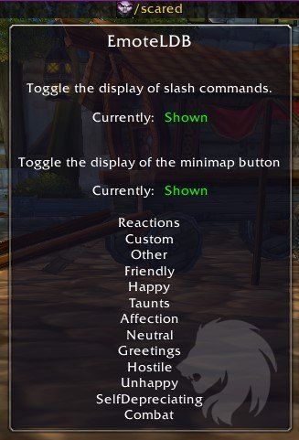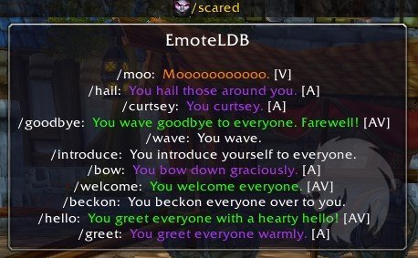 Si no quieres que el formato coincida exactamente con el del addon, es posible que éste deje de funcionar. Si eso ocurre, simplemente reemplaza el EmoteData.lua con una buena copia del zip.