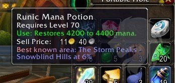 En la lista de mobs que sueltan el ítem, los mobs están codificados por colores de rojo a verde. Un mob rojo es un mob que no has matado muchos, y el drop-rate reportado puede ser inexacto. Cuantos más mobs mates, más verde será el nombre y el drop-rate será mucho más preciso.