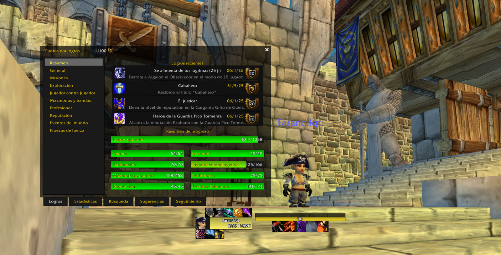 ¡Hola comunidad, muy buenos días! Me presento, mi main ingame es Farandilqt. Aprovecho esta espacial ocasión para compartirles que he concretado por fortuna el 100% de los logros PvE de la expansión en nuestro querido servidor. El principal motivo de esta dedicatoria es para agradecer al Staff y a su incansable labor en compartirnos un servidor 100% funcional en términos PvE, ya que demostradamente es posible concretar la totalidad del contenido disponible en torno a los logros PvE, lo cual representa un hito en sus incansables esfuerzos por ofrecernos una experiencia completa acorde a lo que esta expansión supo ofrecer desde sus tiempos originales y hasta día de hoy aquí también es posible disfrutar de lo mismo :) Asimismo, quisiera compartirles un acotado recorrido (ya que el mismo es super extenso) de todos los desafíos y dificultades que representa el ir completando todos y cada uno de los logros PvE, lo cual implica no sólo un esfuerzo personal sino también de dedicación cooperativa, a lo largo de todos los entornos y modalidades que ofrece cada una de las mazmorras, raids y mundo abierto en general. Ante esto hago especial mención a las hermandades For Kalimdor, War Overlords, Monkey Industry, Espartanos y Ohana, con quienes he compartido muchos de los más memorables momentos en el servidor, logrando muchos objetivos difíciles y entretenidos, y le dieron especial interés a los logros y desafíos colaborativos en PvE. Varias de estas hermandades ya no continúan raideando, algunas sí, pero su legado se mantiene vigente y el reconocimiento es infaltable. También la ocasión es pertinente para agradecer a muchos de los jugadores con quienes hemos logrado la mayor parte de estas hazañas, y por mencionar pero sin limitarme tampoco (ya que son muchas más personas las que hay formado parte de esta travesía) reconozco especialmente a: Carlangas Juanmaverick Sybella Darknatty Ddpatandd Zadkiel Udba Everblue Hermosito Tendominus Oxicodona Darkabadon Jetsse Kamirano Warenz Ulisee Dulcineea Gromnmash Kiriku Totito Driox Panecillos Belmontkuss Titanwar Blackssabath Rickz Nib Odazenko Vorstag Choloramboi Souslteal Chamsky Miklagardur Piachi Clavedefa Yanaina Otharin Ownface Redfunsht Unrien Littletree Acolchado Enuo Bbnay Natsukawa Ruhuns Blozky Kadenoch Goedisa Leyenda Tibbs Hasts Bunnypriest Bestpriest Guchi Zeroz Suku Douth Widgeqt Lunnora Diablo Letoreex Poldy Y muchos pero muchos más jugadores excelentes y de impecables formas que nos acompañaron en todos estos hitos colaborativos a lo largo del tiempo en el servidor Aprovecho la para compartirles un compilado de algunos de estos desafíos, a modo de animar a la comunidad a que se embarquen en estas travesías y sepan inspirarse con todos estos ejemplos, sin olvidar jamás que lo más importante es el tiempo y las risas compartidas con todos los amigos que hacemos a la distancia y en el tiempo, gracias a esta bonita experiencia y nuevamente gracias a UltimoWoW por permitirnos disfrutar de una sólida y gratificante experiencia: Ulduar 10j Yogg Saron Una Luz en la Oscuridad Ulduar 10j Yogg Saron Solo en la Oscuridad Ulduar 10j Algalon Heraldo de los Titanes (Primera Edición) Ulduar 10j Algalon Heraldo de los Titanes (Segunda Edición) Ulduar 25j Yogg Saron Solo en la Oscuridad (Perspectiva Dudu Equi) Ulduar 25j Yogg Saron Solo en la Oscuridad (Perspectiva Dudu Resto) --> ^ Mención especial del logro en El Diario de Karlana ^ <-- Despedida Espartanos (incluyendo momentos especiales como la creación de la primera Val'Anyr de la hermandad ) Prueba del Gran Cruzado 25h Un Tributo a la Inmortalidad (50/50 + 0 Muertes, Realm First) Ciudadela de la Corona de Hielo 25n La Gloria del Asaltante de Corona de Hielo (metalogro montura) Ciudadela de la Corona de Hielo 25h El Rey Exánime (0% Buff, Realm First) Ciudadela de la Corona de Hielo 25h El Rey Exánime (Solo Tank + Solo Heal, Realm First) Ciudadela de la Corona de Hielo 25h El Rey Exánime (1 Room, Realm First) ¡¡Gracias a todos los que formaron parte de este camino, y por muchos más desafíos venideros!!5 puntos