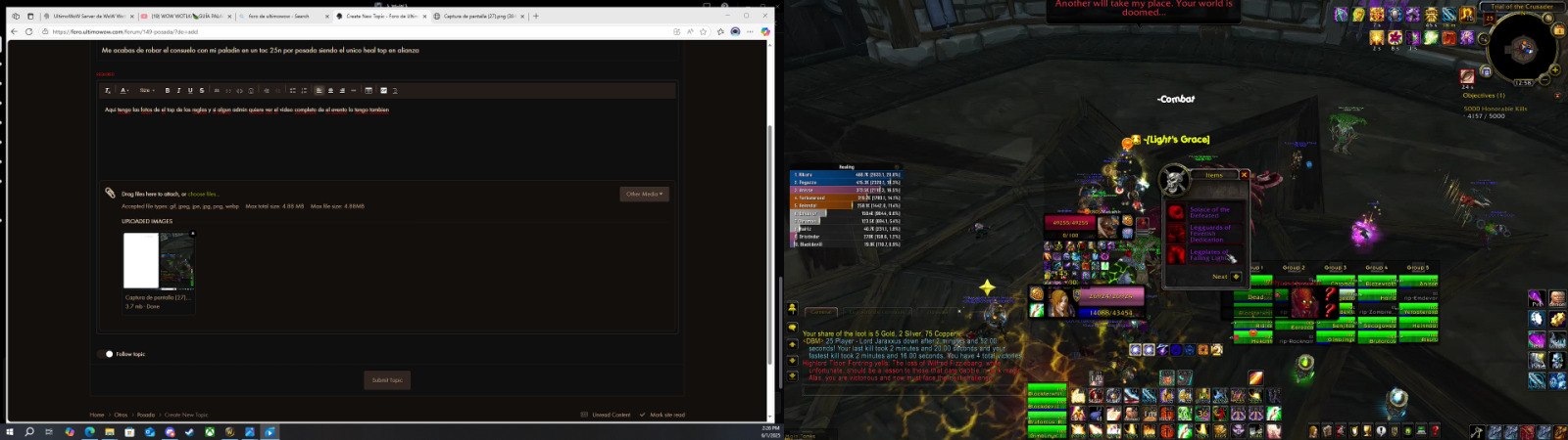 Como es posible que cuentes a un heal que curo en jaraxxu y se fue no loteaba nada xq no estaba en anub topie en todos los boses del evento y me ninjean el abalorio sabes bien claro que el priest disci no estaba en banda a la hora de lootear y que la gente de la raid decia que me dieran el abalorio que lo habia ganado yo y lo lotearon al druida xq quisieron igualmente aqui voy a dejar esas fotos con el recount de ab xq sabes bien que el druida no absorve