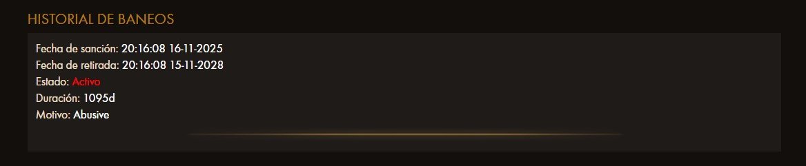 1. Hola, buenas tardes. Me comunico con ustedes porque he recibido un baneo de 1095 días en mi cuenta Hacker598, lo cual representa una sanción prácticamente permanente, ya que para entonces probablemente no volveré al juego. En esta cuenta tenía un progreso considerable que me gustaría detallar: 6.600 de oro El mamut de 20.000 (montura de gran valor) Una gran cantidad de ítems acumulados Un Caballero de la Muerte nivel 80 con 5.3k GS y dual spec Un Guerrero nivel 60 Un Pícaro nivel 45 Profesiones al máximo: Minería y Herrería a 450 Sastrería a 375 Solicito por favor una revisión del caso y, si es posible, una reducción del tiempo de sanción o una reconsideración del baneo. Estoy dispuesto a colaborar en lo que sea necesario para aclarar la situación. Gracias por su tiempo y atención.