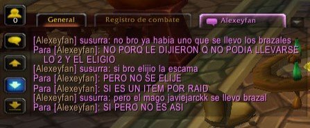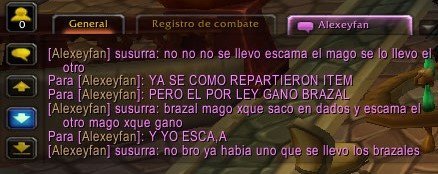el mago Zulella rolleo por Brazales de la noche ígnea ganando en dados luego roleo por la escama carboniza y tambien gano en dados y posteriormente se arreglo darlos los brazales a otro mago y el llevarse la escama cuando el por logica de las reglas del juegos es un item por raid.. primero gana brazales luego elige escama y asi fue dada cuando la escama la gane yo con 60 segundo en dados.. me parece injusto que si no sabe las reglas de roleo perjudique a los demas.. acontinuacion les dejo los susurros con el lider de la SR Alexeyfan.. y dejo otra captura donde hay 2 personajes que entienden lo mismo que yo que el roleo fue arreglado por la hermandad y dado por arreglo no por reglas.. ACLARANDO EN EL SUSURRO QUE EL MAGO DECIDIO CUAL ITEM LLEVANDO PERJUDICANDO AL RESTO..!!