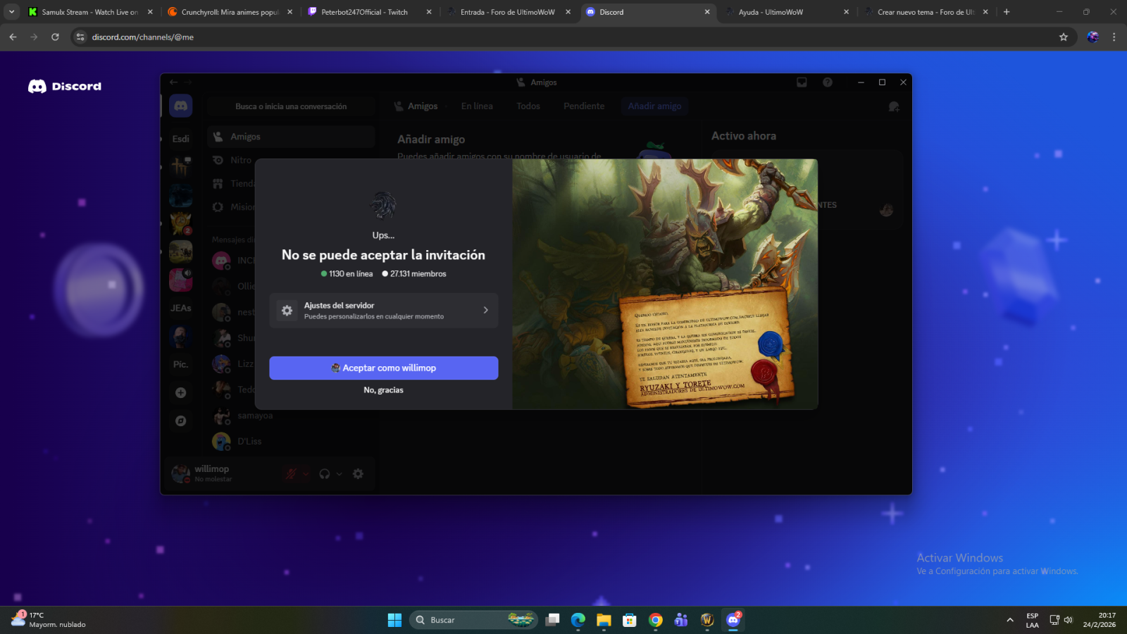 No me deja entrar en Discord,ayuda porfavor si me pueden aceptar