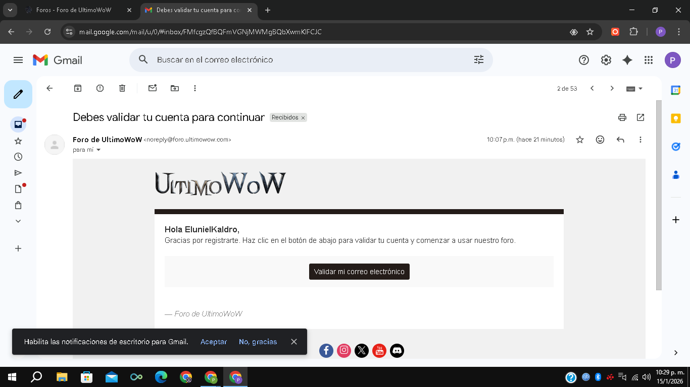 1. Hola, si, por supuesto. aqui adjunto los dos correos que me llegaron. Aunque no tengo capture de pantalla para probar que si le di en "Validar correo" pero aqui estan los correos que me llegaron