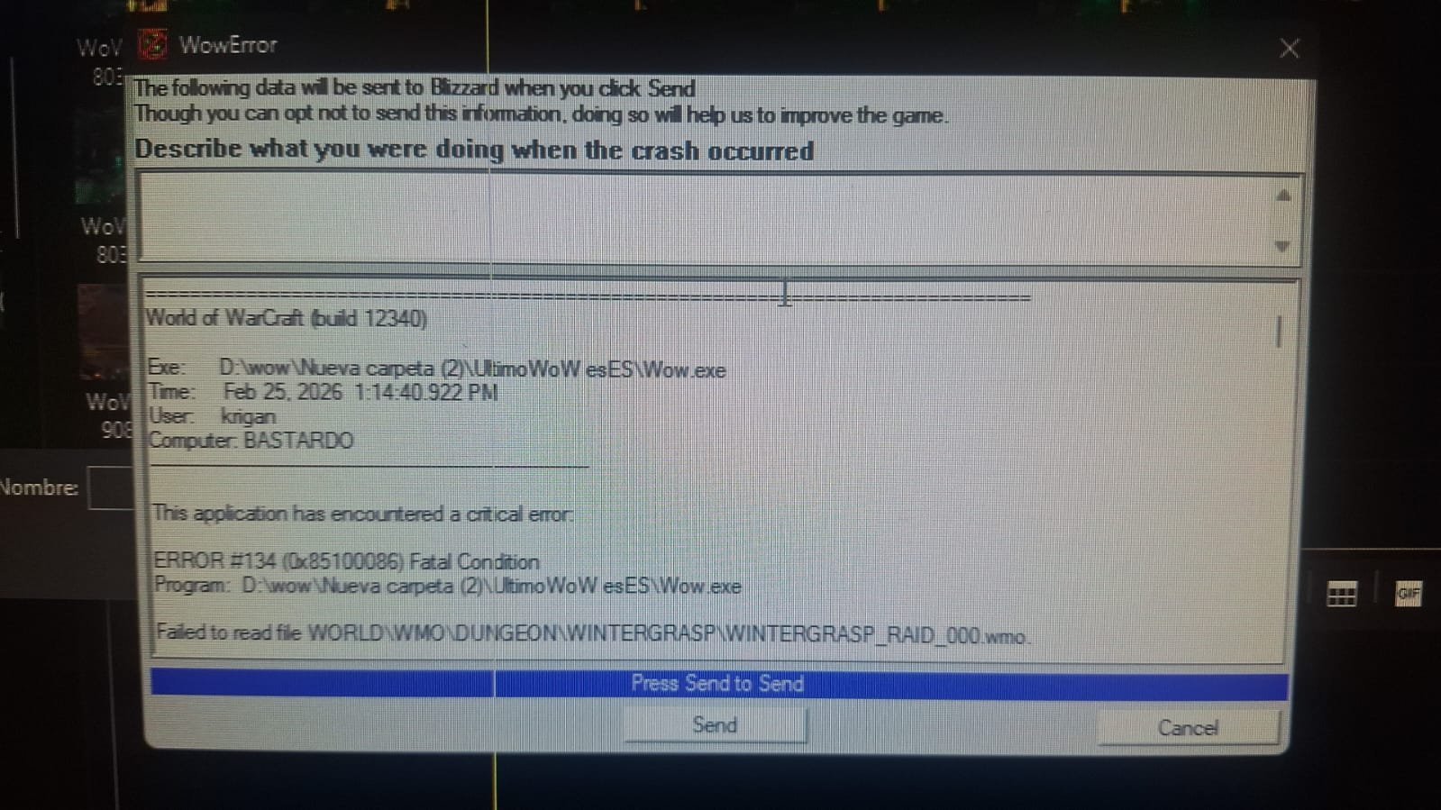 El juego me arroja error al entrar a winter y al logear me bota una y otra vez